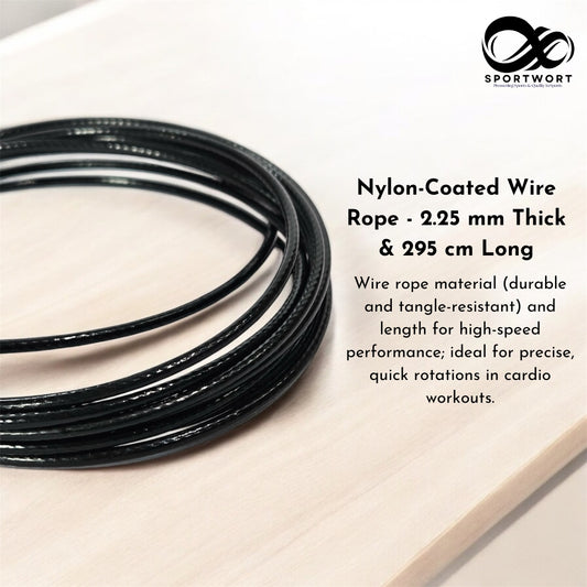 Sportwort Speed Skipping Rope with Metal Bush Handle, Nylon-Coated Adjustable Wire Rope – For Women & Men