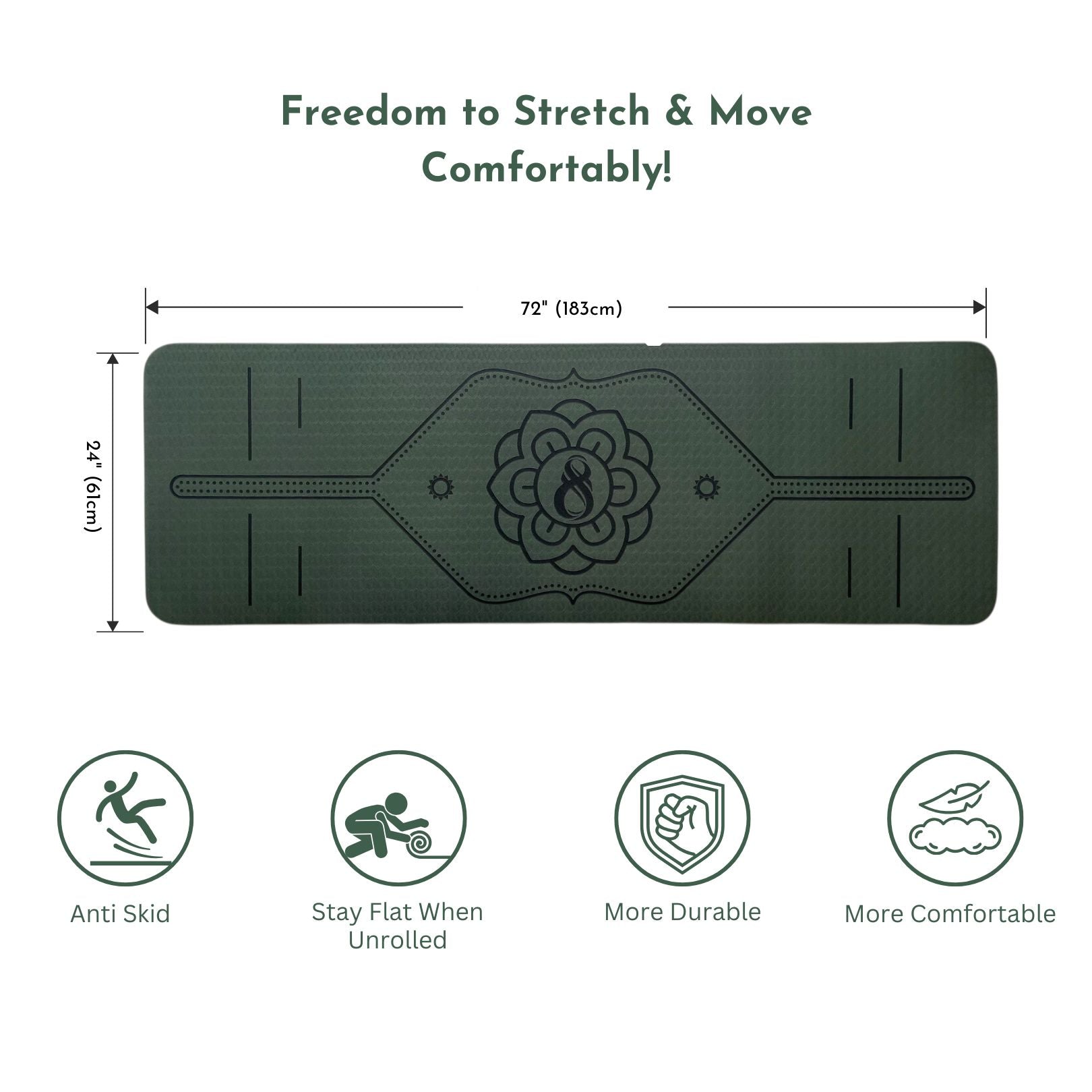 Sportwort 8mm TPE Alignment Yoga Mat | Non-Slip, Extra Thick Cushioning Mat for Yoga & Fitness – Olive Green